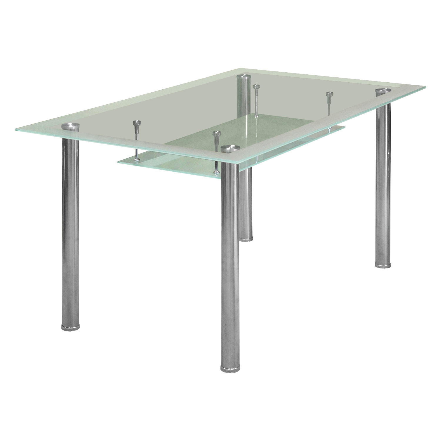 provedení v kombinaci kov / čiré tvrzené sklo kovové pochromované nohy