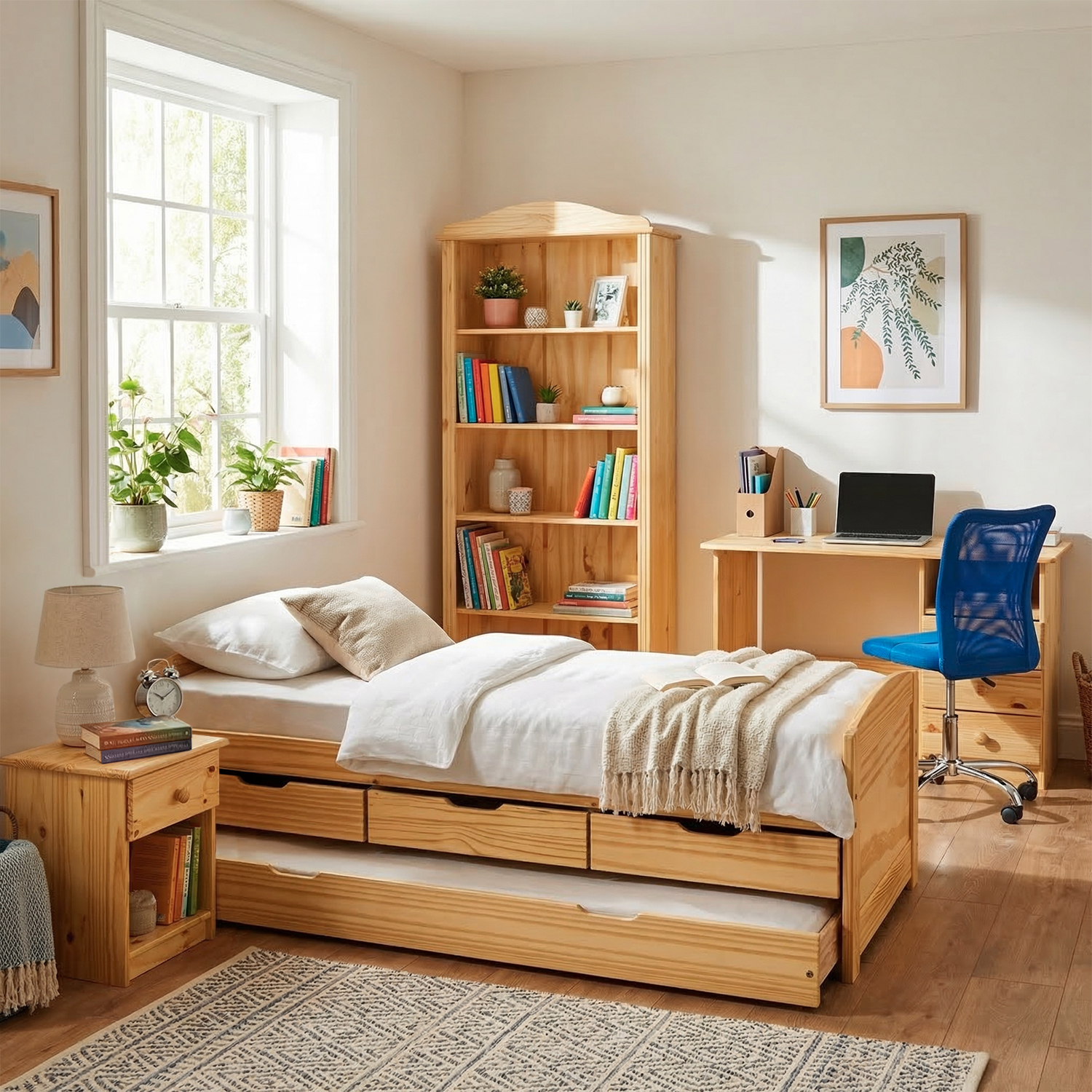 materiál masiv borovice, lakované provedení pojízdný na kolečkách maximální nosnost 15 kg vhodný doplněk dvoulůžka 8892