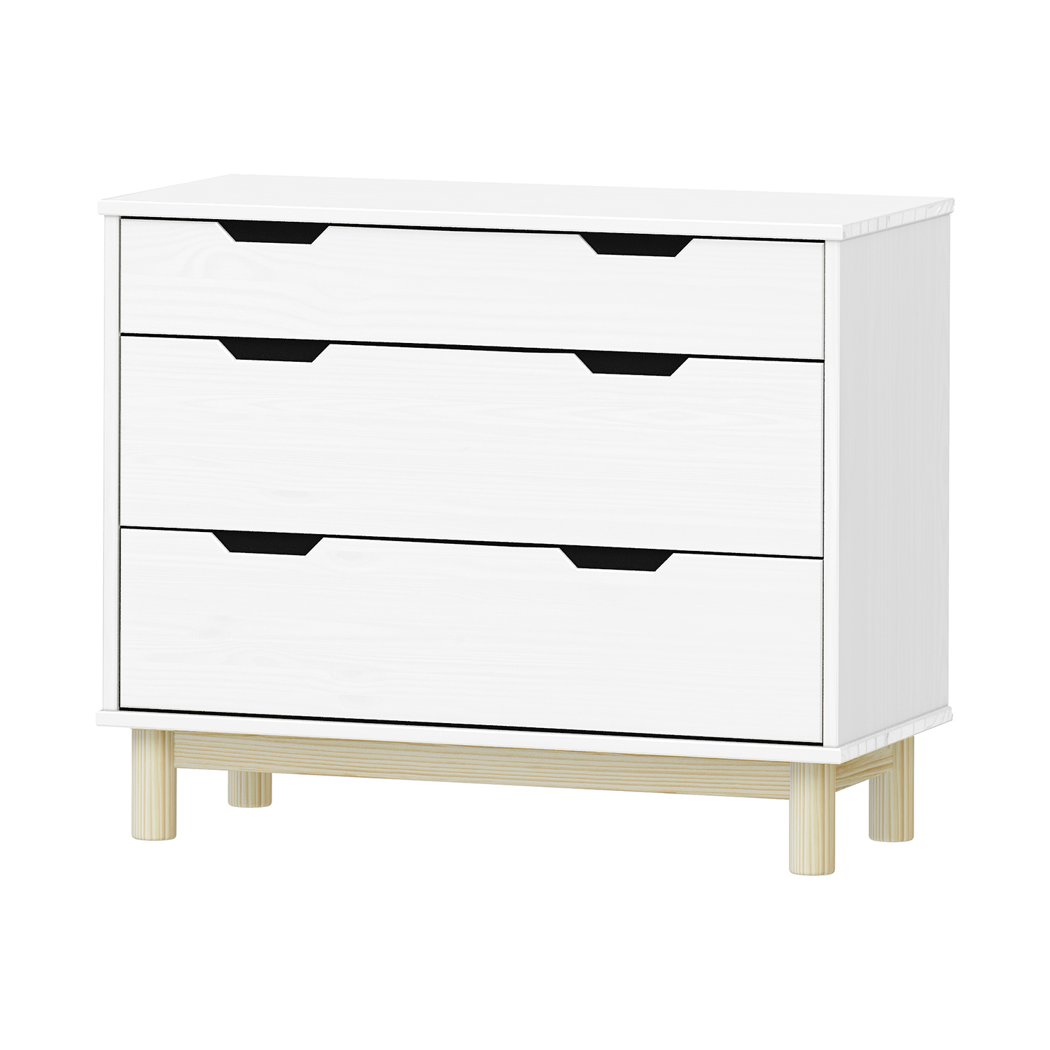 materiál masiv borovice, barevné provedení bílý lak 2 zásuvky s kovovými pojezdy, 1 dvířka, 1 police otvor na protažení kabelů