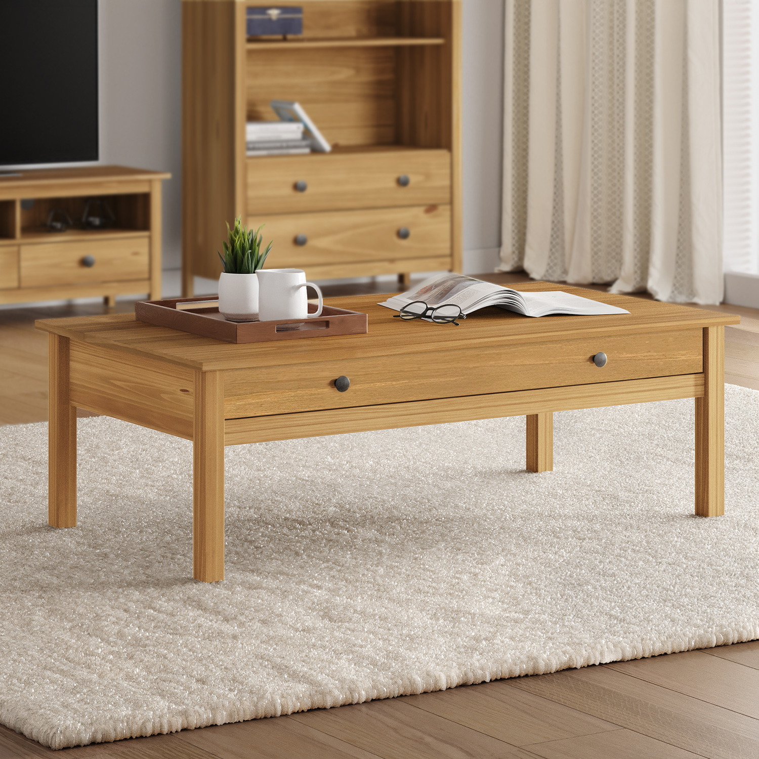 materiál masiv borovice voskovaná v medovém odstínu kovové úchytky v barevném provedení černěná mosaz 3 zásuvky s kovovými pojezdy, 1 police