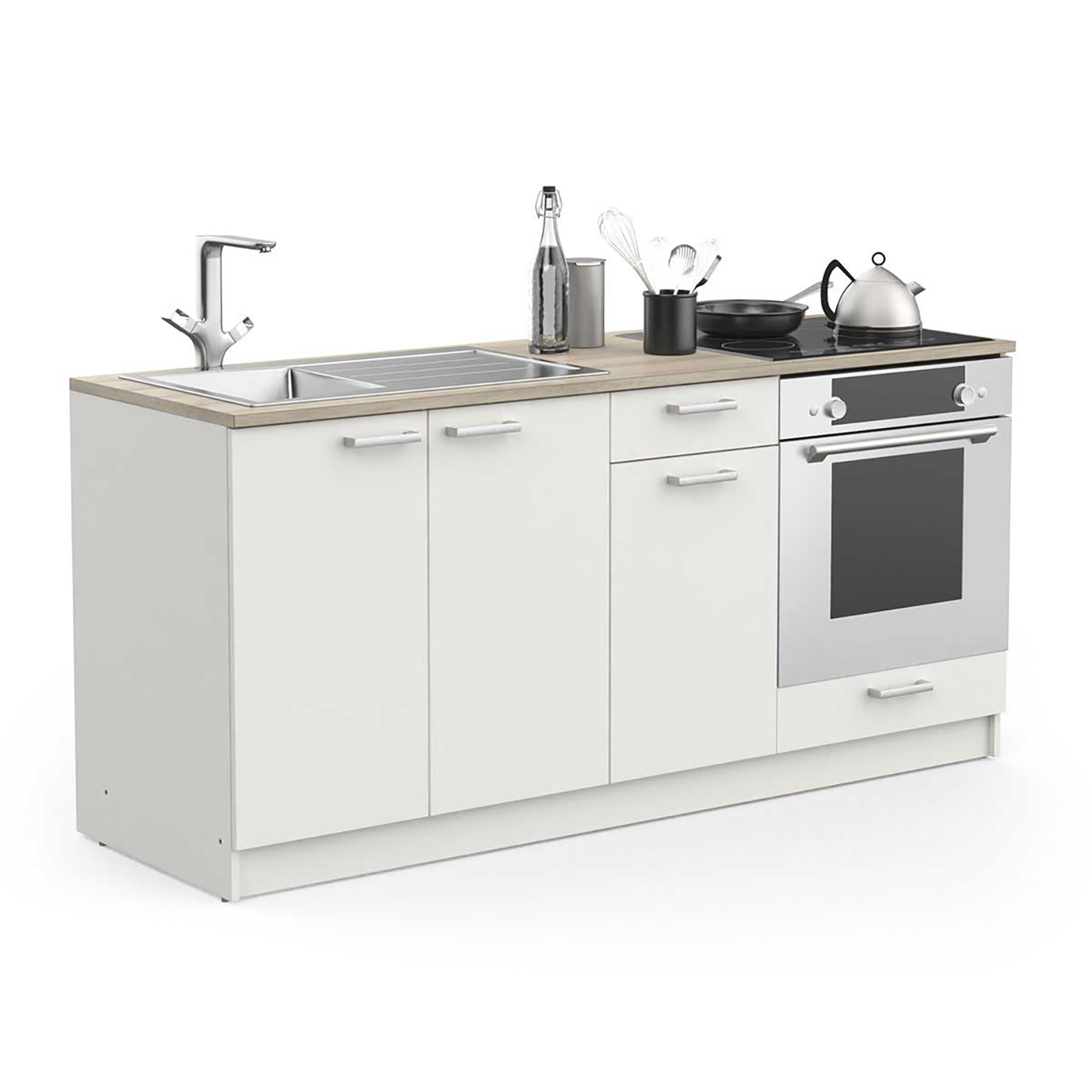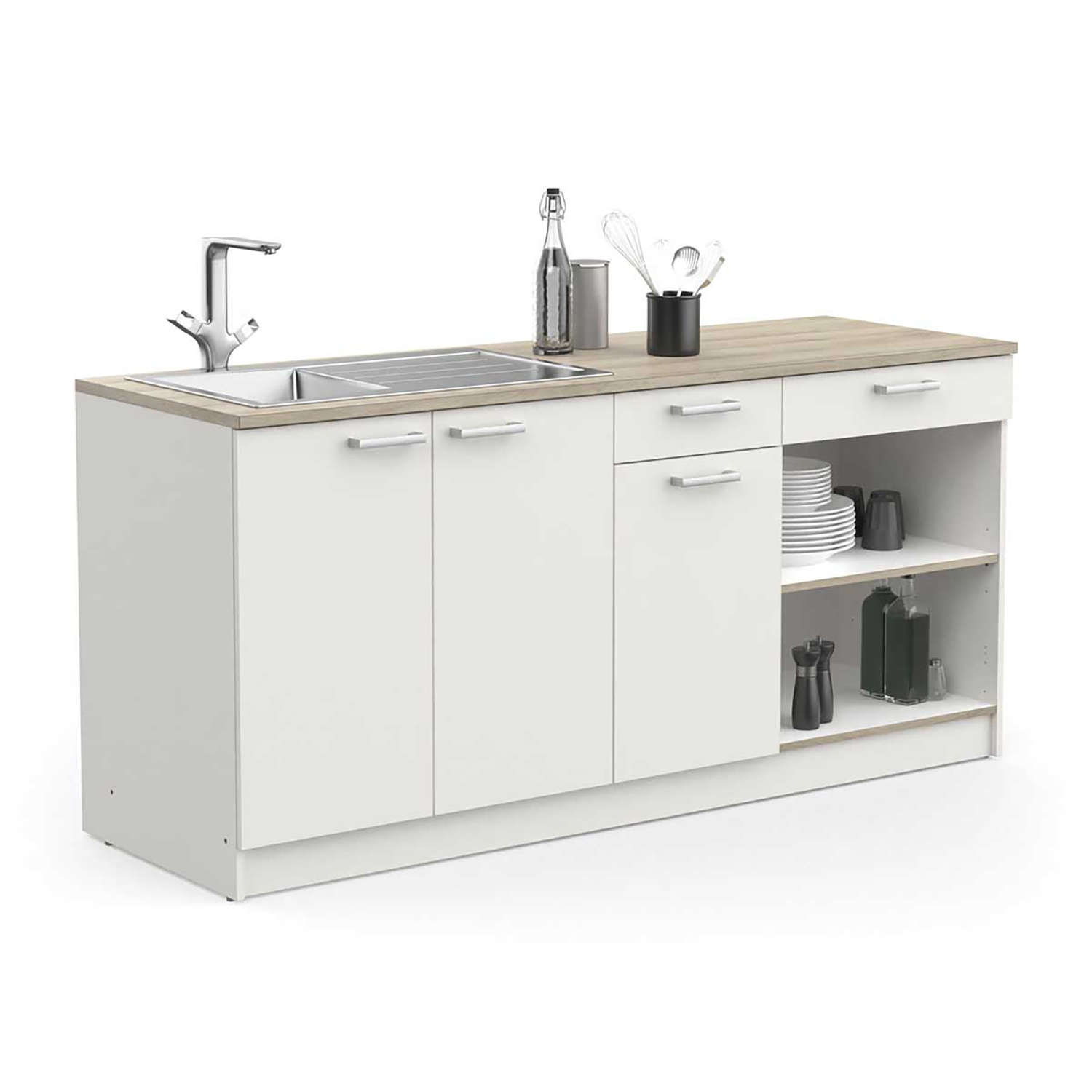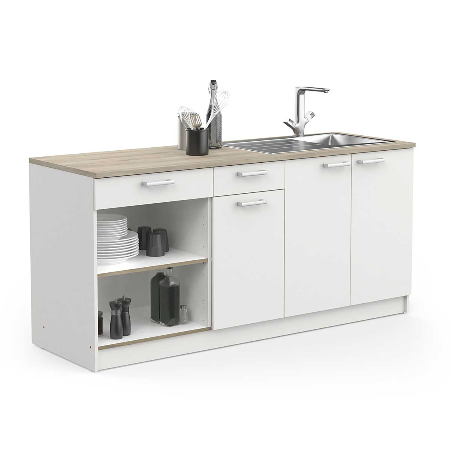 barevné provedení dub Kronberg / matná černá 100% voděodolný melaminový povrch 4 dvířka, 2 variabilní police, 1 zásuvka s kovovými pojezdy vnitřní roz...