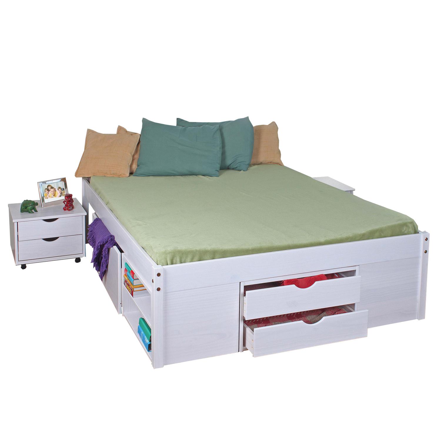 materiál masiv borovice, barevné provedení bílý lak výška sedu postele 37 cm dřevěné laťkové rošty jsou v ceně, matrace nejsou v ceně výsuv možno využ...