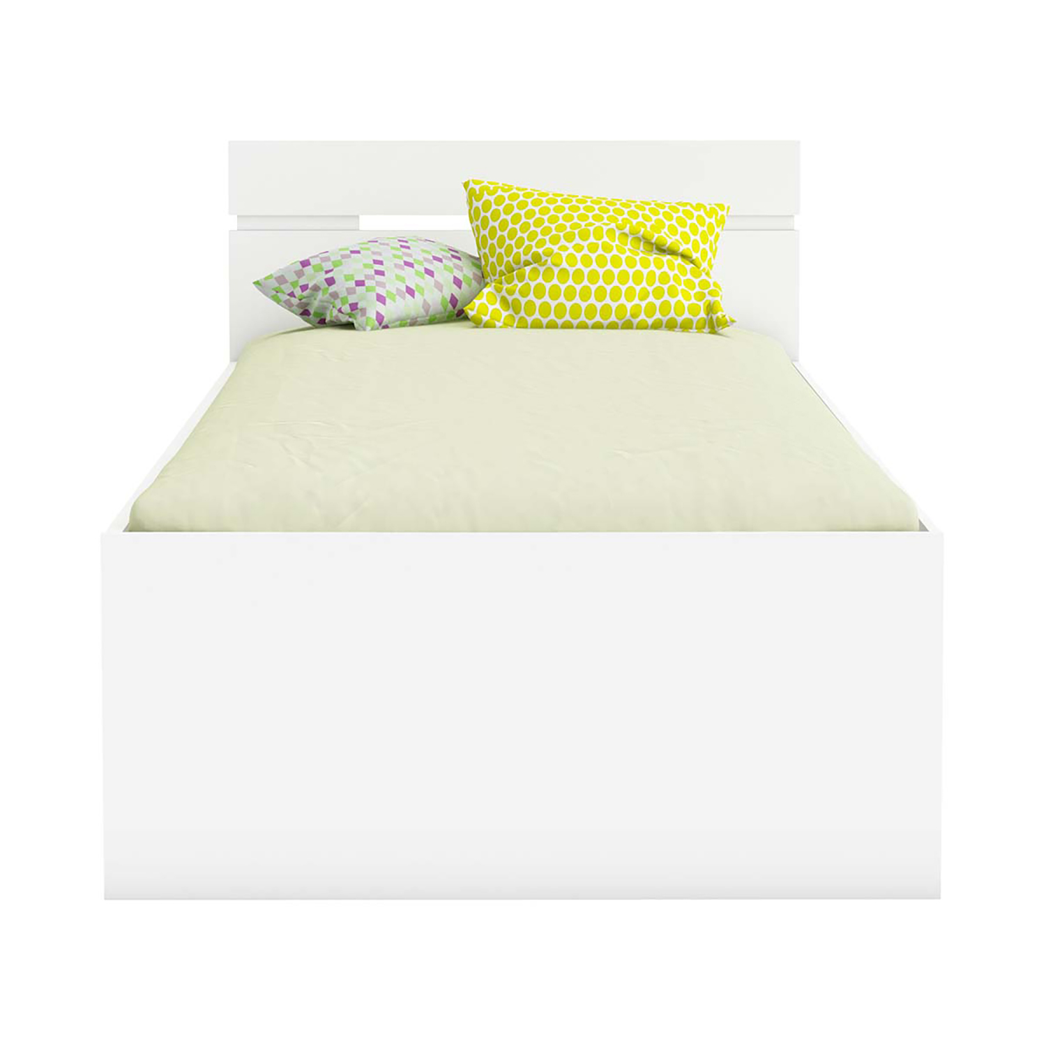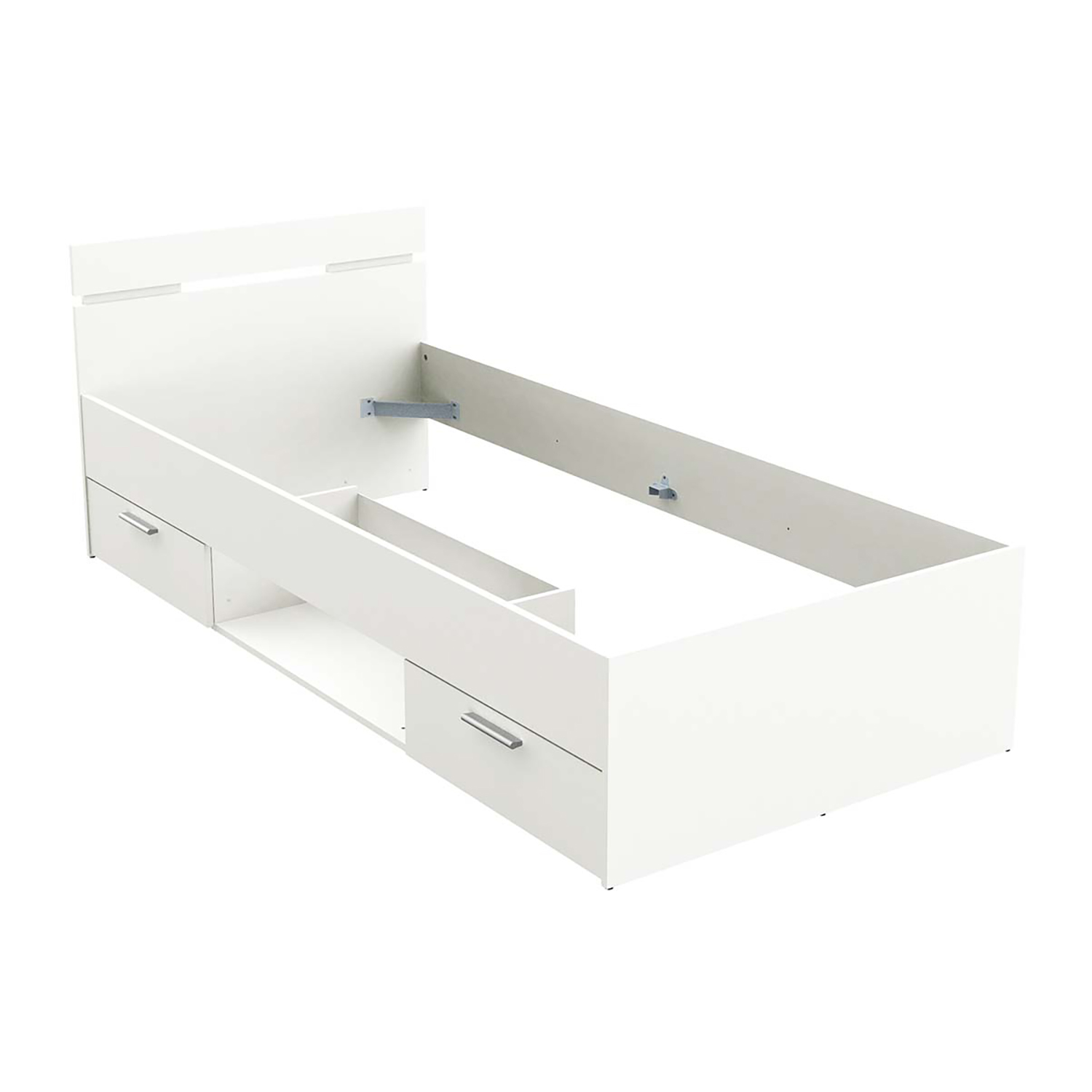 barevné provedení matná bílá 2 úložné zásuvky s kovovými pojezdy a odkládací nika jsou v ceně matrace a rošt nejsou v ceně, doporučený rozměr matrace 90 × 200 cm k posteli je nutno použít samonosný rošt v rámu 90 × 200 cm (7154 nebo 7861) doporučená maximální nosnost 100 kg