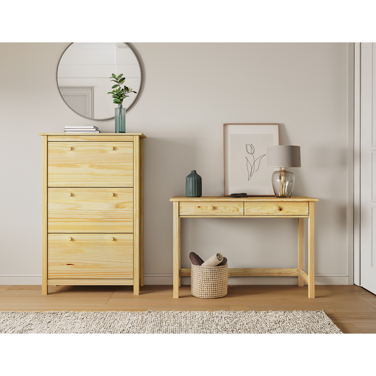materiál masiv borovice, lakované provedení tři zásuvky s kovovými pojezdy