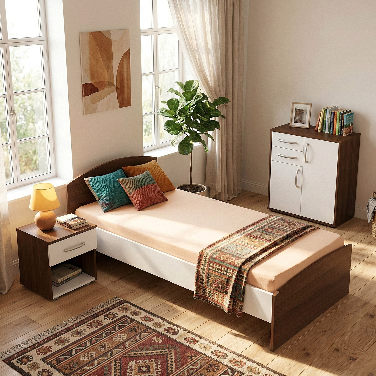 barevné provedení ořech / bílá 1 velká a 2 malé zásuvky, výška sedu 41 cm, cena bez roštu a matrace doporučený rozměr matrace 90 × 200 ...