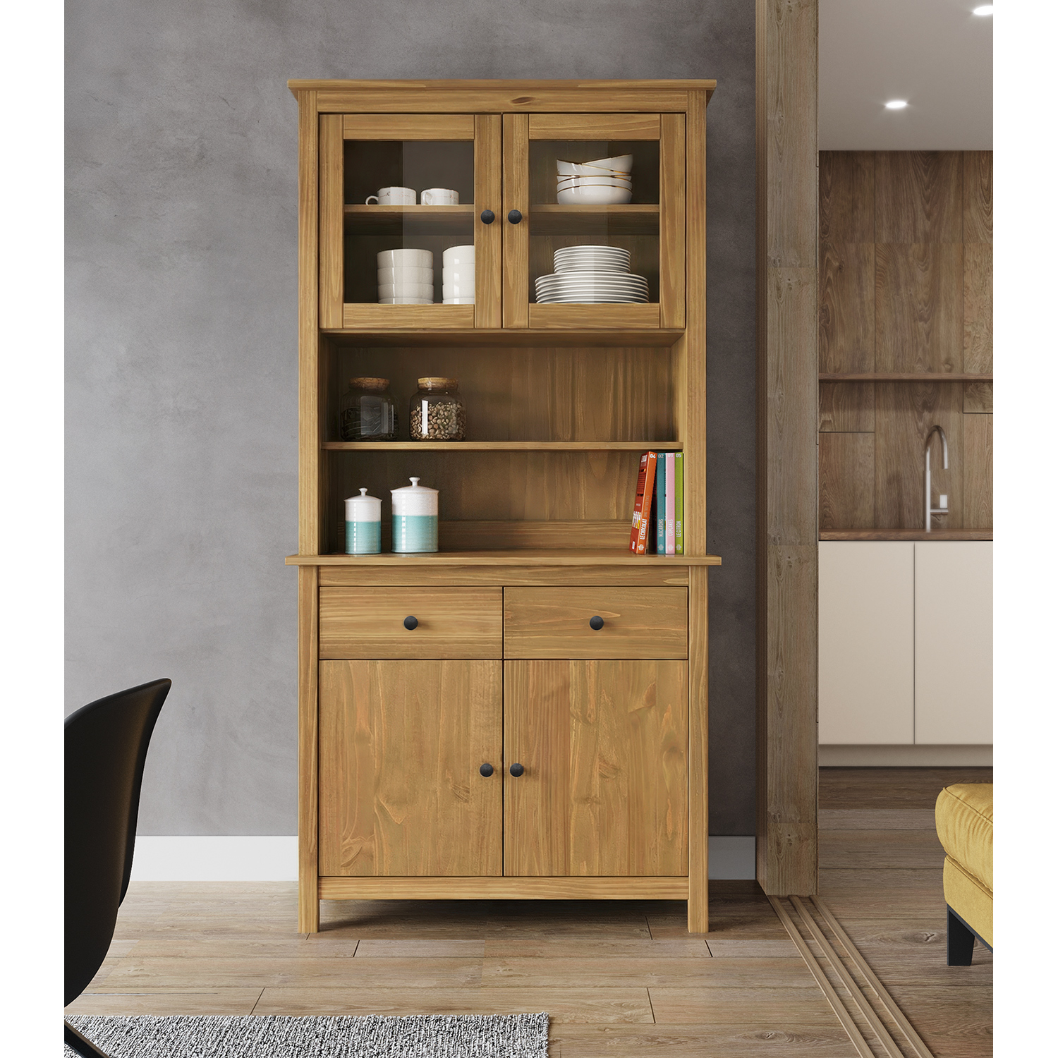 sestava příborníku TORINO 8095V a nástavce TORINO 8096V materiál masiv borovice voskovaná v medovém odstínu kovové úchytky v barevném proved...