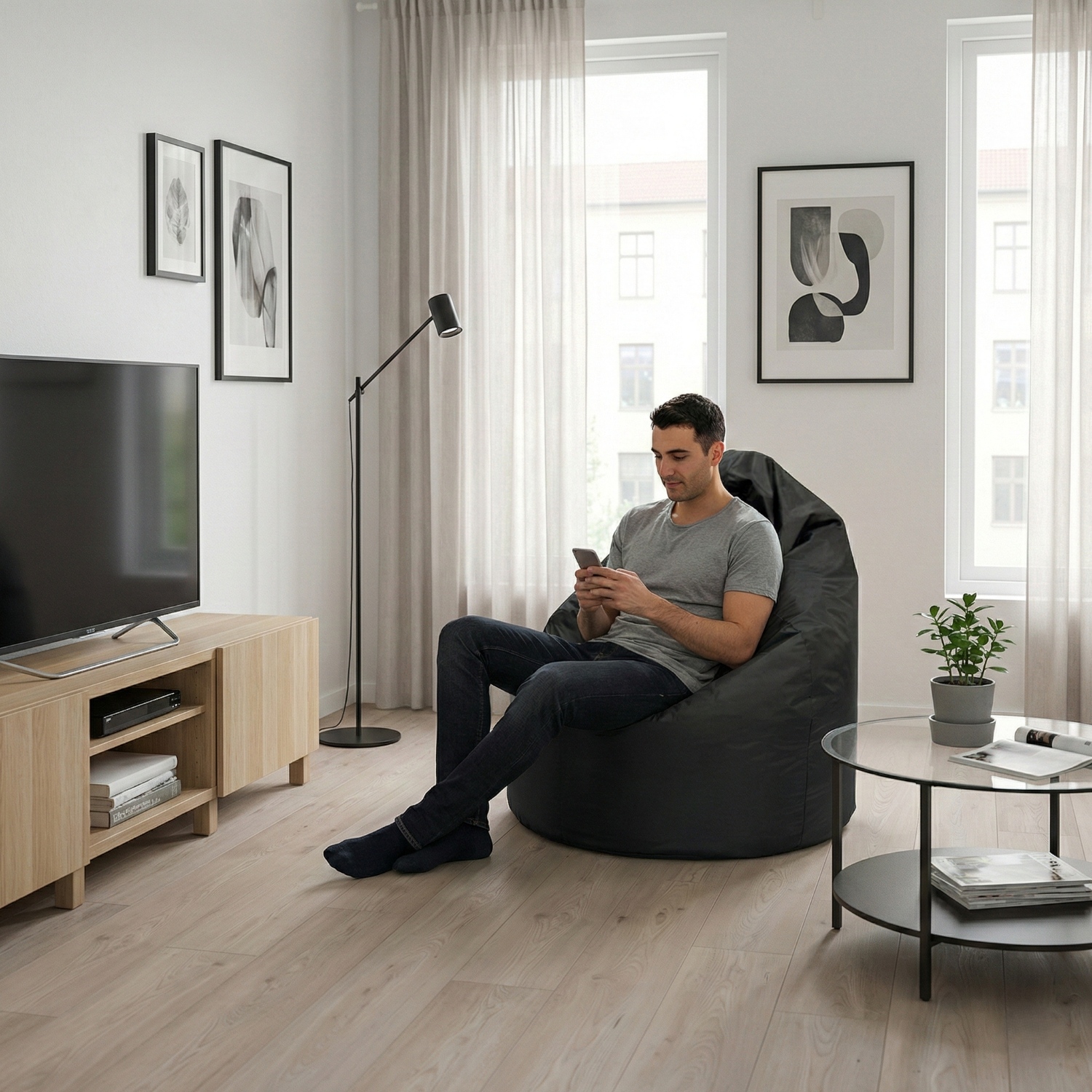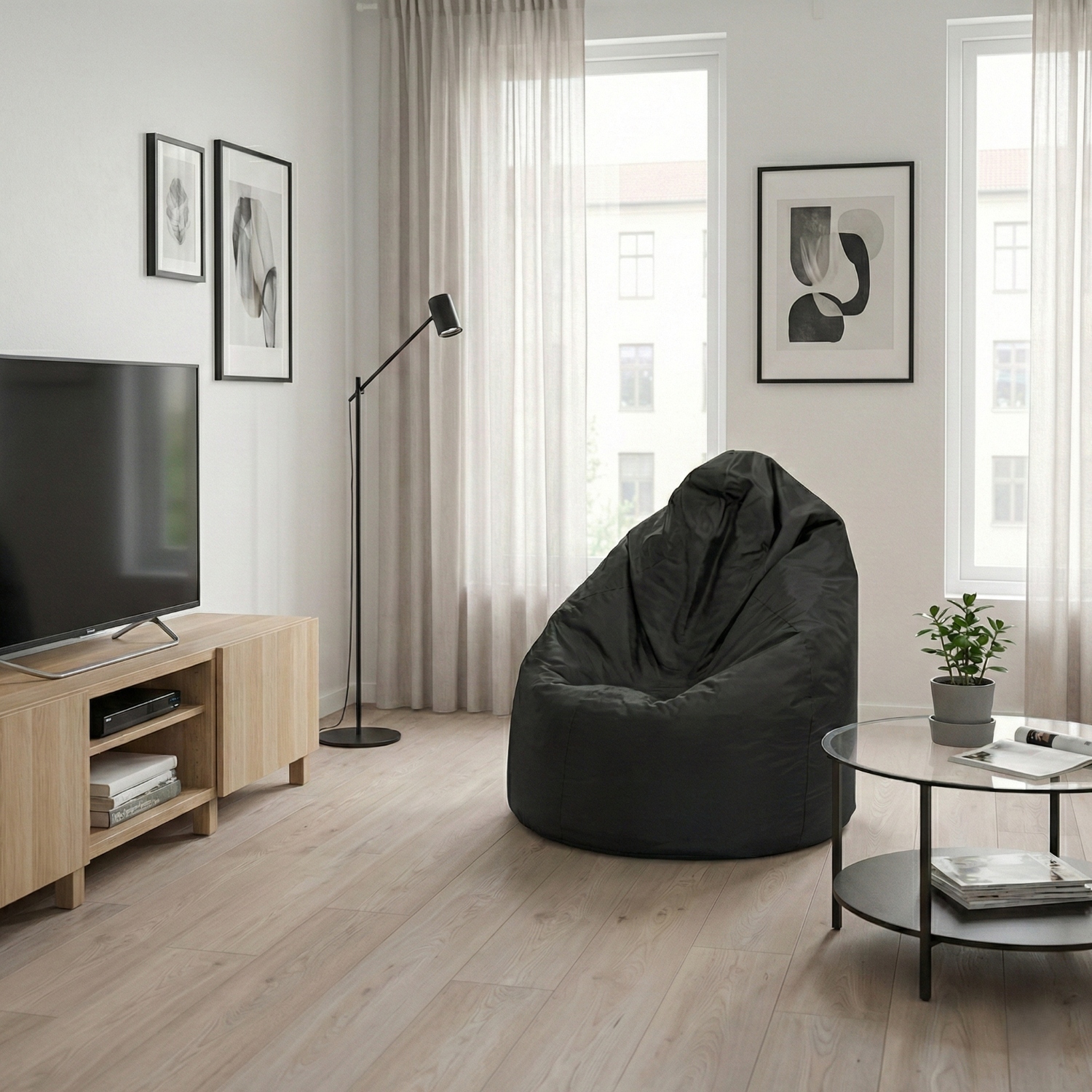 sedací vak ve tvaru hrušky potah nylon, barevné provedení černá plněný kuličkami z polystyrolu, obsah náplně 150 l zipový uzávěr, náplň možno doplňova...