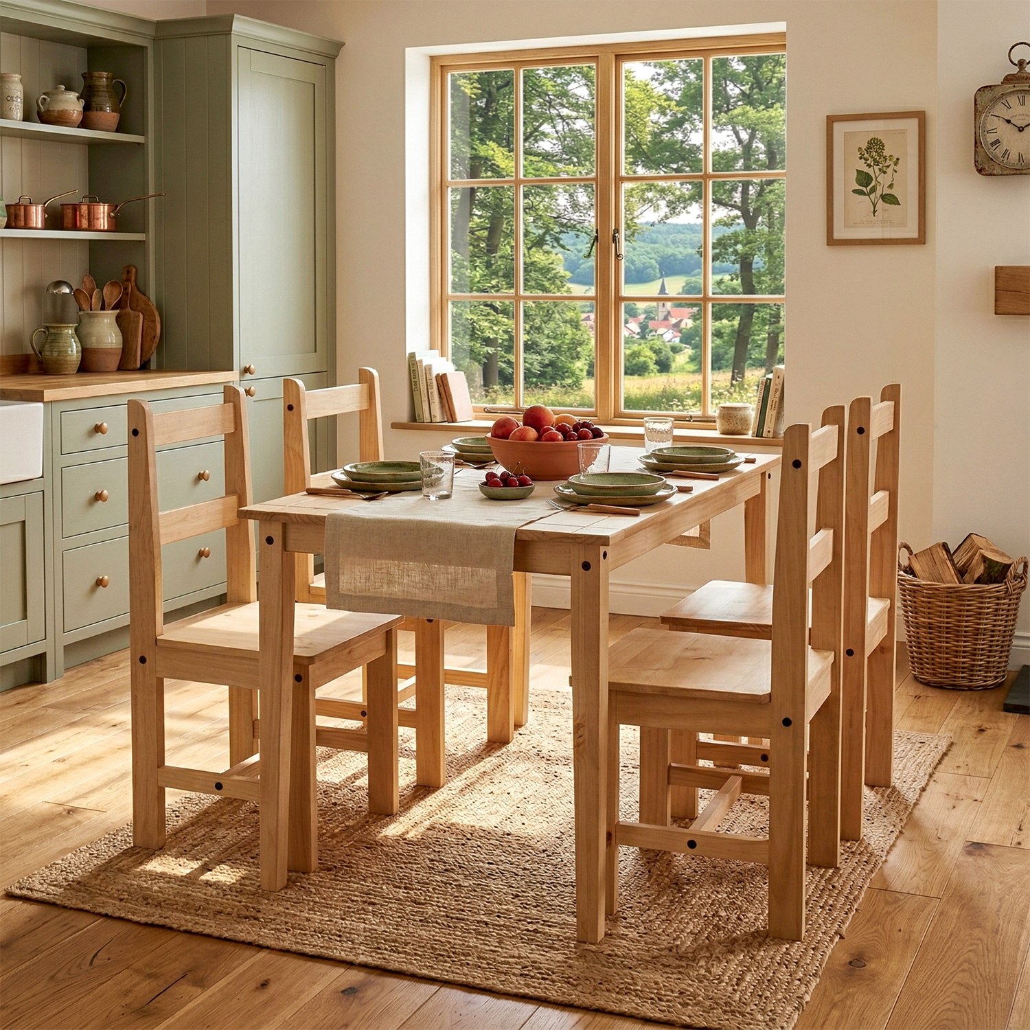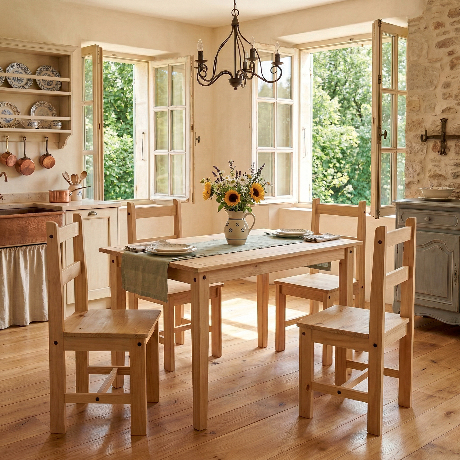 materiál masiv borovice voskovaná v medovém odstínu rozměr stolu (š/h/v) 100 × 80 × 75 cm součást sestavy Corona 2