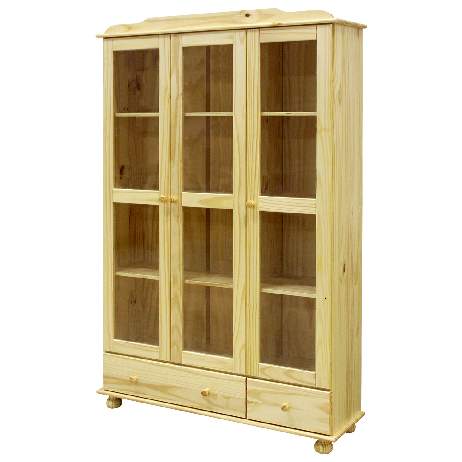 materiál masiv borovice, lakované provedení široká zásuvka s kovovými pojezdy, 2 prosklené dveře 2 variabilní a 1 pevná police